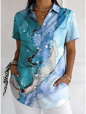Per donna Camicia Bottoni Stampato Grafico Geometrico Vintage Elegante Moderno Manica Corta Colletto a Camicia Top Regolari Quotidiano Blu Rosso Viola Verde Estate Primavera