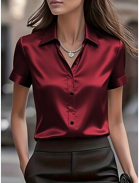 Per donna Camicia Blusa Bottoni Semplice Elegante Classico Moderno Manica Corta Colletto a Camicia Top Regolari Quotidiano Ferie Uscire Nero Bianco Rosso Estate Primavera