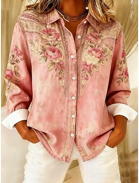 Per donna Camicia Finto cotone e lino Bottoni Stampato Floreale Grafico Bohemien Attivo Casual Manica Lunga Colletto a Camicia Top Regolari Quotidiano Ferie Rosso Primavera Autunno