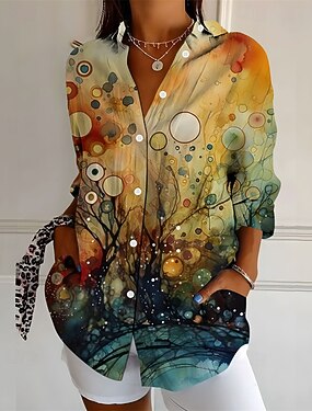 Per donna Camicia Bottoni Stampato Grafico Geometrico Attivo Quotidiano Elegante Manica Lunga Colletto a Camicia Top Regolari Quotidiano Ferie Arancione Primavera Autunno