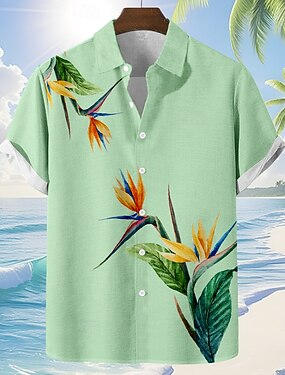 Per uomo Piante Tropicali Camicia di lino Camicia hawaiana estiva Camicia con Bottoni Manica Corta Hawaiano Resort Vacanza Ferie Abbigliamento mare Estate Primavera Collo ripiegato camicie con