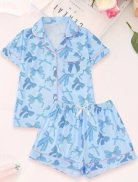 Per donna Pigiama Abbigliamento da Casa Set Pigiama Moda Casual Comfort Grafico Colore Puro Cardigan con Bottoni Elastico in vita Shorts Quotidiano Casa Vacanza Manica Corta Colletto a Camicia Blu