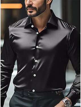 Per uomo Camicia Camicia in raso Camicia elegante Camicia con Bottoni Sfumatura Affari Matrimonio Blu Argento Nero Bianco Manica Lunga Collo ripiegato Tutte le stagioni Abbigliamento Puro