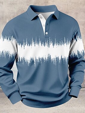 Per uomo Geometrico Polo Manica Lunga Magliette polo Bavero Casual All'aperto Streetwear Athleisure Abbigliamento quotidiano Stampa 3D Bottoni Primavera Autunno Inverno Blu