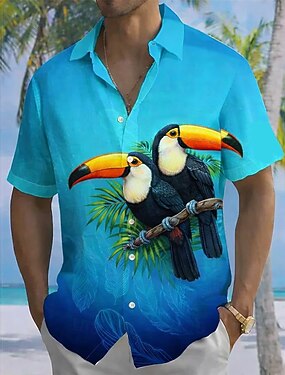 Per uomo Animale Pappagallo Colore sfumato Camicia hawaiana estiva Camicia con Bottoni Camicia Aloha Manica Corta Hawaiano Vacanza Abbigliamento mare Estate Primavera Collo ripiegato Stampa 3D