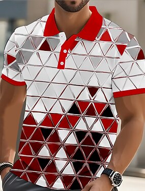 Per uomo Geometrico Polo Manica Corta Magliette polo Camicie con Colletto Business Casual All'aperto Athleisure Abbigliamento quotidiano Stampa 3D Bottoni Primavera & Estate Blu Rosso Arancione