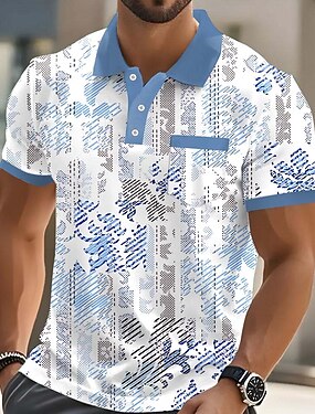 Per uomo Geometrico Polo Manica Corta Magliette polo Camicie con Colletto Casual Athleisure Bottoni Tessuto retato traspirante Primavera & Estate Blu Rosso Viola