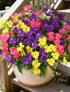 6 mazzi di fiori di impatiens artificiali per esterni, fiori finti in seta multicolore per decorazioni primaverili ed estive, piante finte resistenti ai raggi UV, bouquet in plastica per vasi da