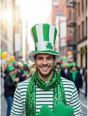 verde per il giorno di San Patrizio da uomo &cappello da folletto a strisce bianche con trifogli – copricapo festivo per le celebrazioni di San Patrizio