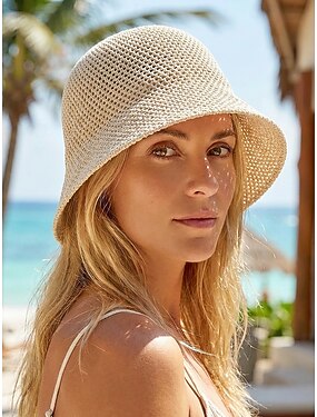 Cappello a secchiello intrecciato da donna in stile bohémien, traspirante, pieghevole, in poliestere, disponibile in diversi colori, ideale per vacanze al mare, abbigliamento casual quotidiano, viaggi