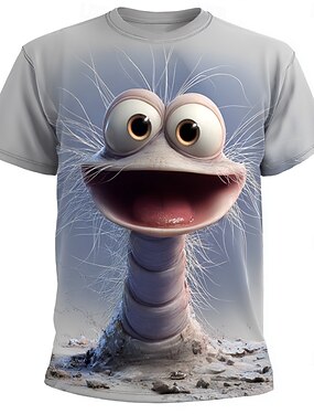 Per uomo 3D Divertente Verme Maglietta Manica Corta maglietta Stampa 3D Girocollo Camicia Esagerato Designer Feste Ferie Verde Nero & Grigio Grigio Estate Primavera Abbigliamento S M L XL XXL XXXL