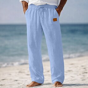 Per uomo Pantaloni di Lino Pantaloni Pantaloni Estivi Pantaloni Larghi Coulisse Elastico in vita Gamba Dritta Semplice Leggero Traspirante Lunghezza intera Casuale Quotidiano All'aperto Vacanza Moda
