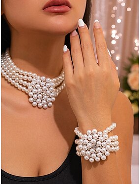 set di collana e bracciale di perle da donna, gioielli vintage in stile Gatsby per feste ed eventi a tema anni '20