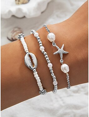 Set di braccialetti da donna con perline di conchiglia in stile boho - bracciale elastico con ciondoli a forma di stella marina, 7 pezzi, in vari colori, per abbigliamento estivo da spiaggia e da resort