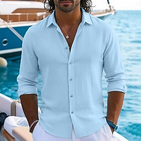 Per uomo Camicia Camicia di lino Camicia Estiva Abbigliamento da spiaggia Camicia con Bottoni Semplice Casuale Quotidiano Nero Bianco Rosa Blu marino Manica Lunga Collo ripiegato Primavera & Estate