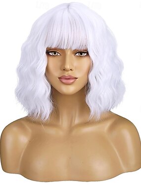 parrucca bionda ombre con la frangetta parrucca ondulata caschetto corto con la frangetta per le donne parrucca riccia sciolta lunghezza delle spalle parrucca sintetica parrucca cosplay per la ragazza