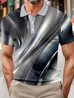 Per uomo Geometrico Linea Magliette Polo a Nido d'Ape Manica Corta Magliette polo Camicie con Colletto Business Casual All'aperto Affari Athleisure Stampa 3D Bottoni Estate Grigio