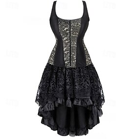 Retrò Vintage Rococò Punk & Gotico Corto / Mini Vestito Corsetto Overbust Bustino Strega Jacquard Pizzo Senza spalline Costume Per donna Fantasia Stile Steampunk Notte di Valpurga Halloween Carnevale