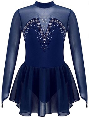 Abito da pattinaggio artistico Per donna Ragazze Pattinaggio sul ghiaccio Vestito Blu Patchwork Rete Alta elasticità Allenamento Competizione Vestiti da pattinaggio sul ghiaccio Classico Cristallo