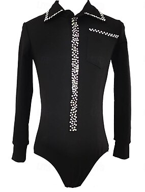 Abbigliamento per pattinaggio artistico per ragazzi e uomini, classico girocollo con strass luccicanti, costume da competizione per pattinaggio artistico, ginnastica, bambini e adulti, body a maniche