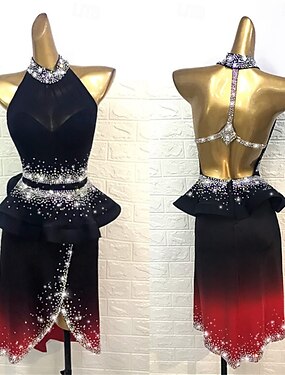 Vestito da pattinaggio artistico Per donna Da ragazza Pattinaggio sul ghiaccio Vestiti Nero Collage Scollatura posteriore Retato Elastene Elasticizzato Addestramento Da allenamento Professionale