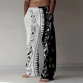Per uomo Pianoforte Note Musicali Pantaloni Pantaloni Larghi Pantaloni casual Misura del girovita medio Vintage Retrò Vacanza Ferie Coulisse elastica in vita Pantaloni tipo lino con tasche Estate