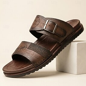 Sandali da uomo in similpelle marrone con cinturino con fibbia retrò e supporto plantare, perfetti per le passeggiate quotidiane, per l'uso all'aperto e per i viaggi in vacanza.