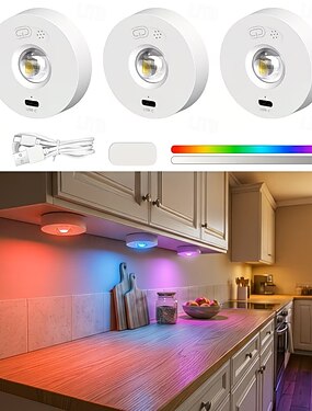 3 luci LED ricaricabili per armadietti, magnetiche, luci RGB wireless con telecomando, per armadi, cantinette, illuminazione sottopensile, nessun cablaggio richiesto, ricaricabili tramite USB