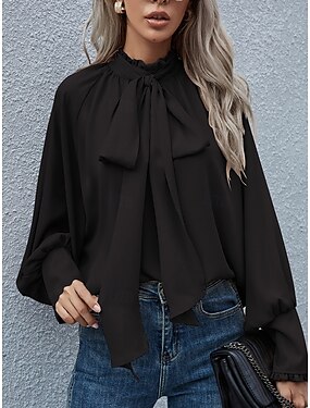 Per donna Camicia Blusa Top in chiffon Arricciato Patchwork Semplice Elegante Vacanza Manica Lunga Collo Alto Top Regolari Quotidiano Ufficio Ferie Blu Nero Rosa Vino Arancione Estate Primavera