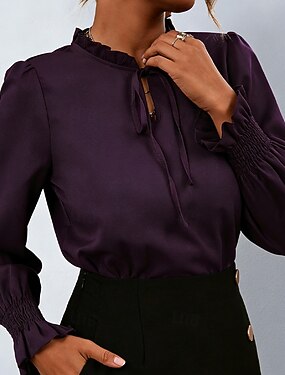 Per donna Camicia camicetta di raso Camicia elegante Tinta unica Semplice Elegante Moda Casual Manica Lunga Manica a Campana Collo alla coreana Top Regolari Quotidiano Ufficio Lavoro Viola Estate
