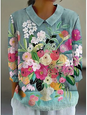 Per donna Camicia Bottoni Stampato Floreale Attivo Quotidiano Elegante Manica Lunga Colletto a Camicia Top Regolari Quotidiano Ferie Blu Primavera Autunno