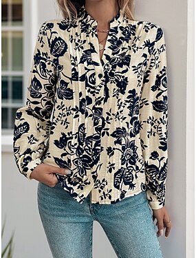 Per donna Camicia Bottoni Stampato Floreale Grafico Elegante Essenziale Moderno Manica Lunga Colletto a Camicia Top Regolari Quotidiano Lavoro Blu Rosso Viola Beige Primavera Autunno Inverno