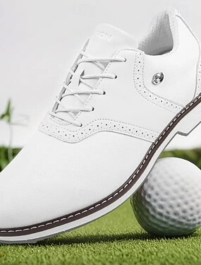 scarpe da golf da uomo bicolore blu navy e bianco, allacciate, in pelle resistente, eleganza sportiva per il golf quotidiano