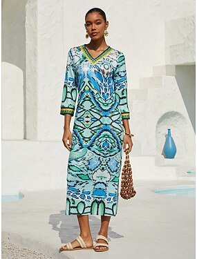 vestito maglione donna stampa grafica scollo a v midi elegante bohémien casa quotidiano manica 3/4 estate