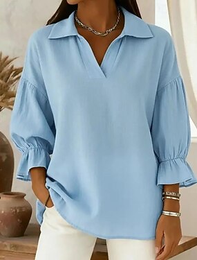 Per donna Maglietta Semplice Moda Elegante Classico Manica 3/4 Manica a Lanterna Scollo a Barca Top Regolari Quotidiano Uscire Weekend Bianco Giallo Viola Albicocca Estate Primavera