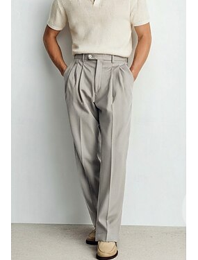 Pantaloni eleganti da uomo in lino, plissettati, vestibilità comoda – pantaloni estivi leggeri e casual, gamba larga e dritta, disponibili in marrone, blu navy e beige.