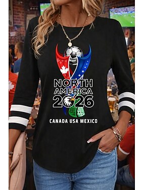 Maglietta da Donna World Soccer Match 2026 Stampa Grafica Squadra di Calcio Vintage Moda Elegante Maniche Lunghe Collo Tondo Regular Top Giornalieri Weekend Blu Nero Rosso Verde Primavera Autunno