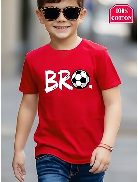 100% Cotone Bambini Ragazzi Nero Bianco Rosso Grafico Calcio Maglietta Blusa Girocollo Manica Corta All'aperto Abbigliamento Quotidiano Moda Streetwear Designer Stampa Estate Primavera