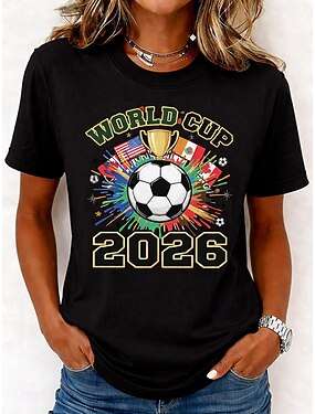 partita mondiale di calcio 2026 maglietta da donna stampa grafica squadra di calcio elegante classico casual manica corta girocollo top regolare casual quotidiano nero bianco estate primavera