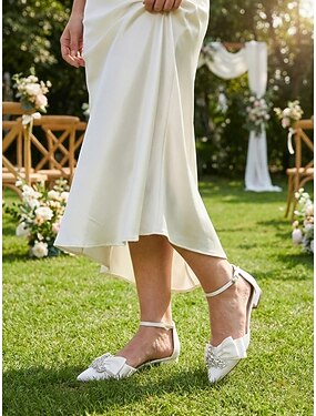 scarpe basse con cinturino in cristallo bianco e punta slingback per la sposa – eleganti scarpe da sposa e da damigella in raso con tacco basso