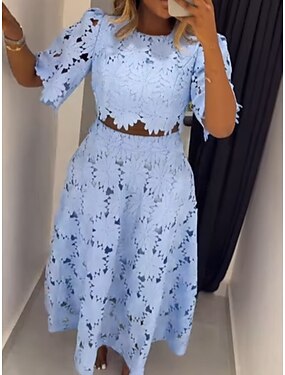 Due Pezzi Tubino Colonna Lunghezza al ginocchio Abito da invitata a nozze Abito da cerimonia per signora Manica 3/4 Collo gioiello Elegante Ospite di nozze Chiesa Chiffon Raso Pizzo Abiti Corti con