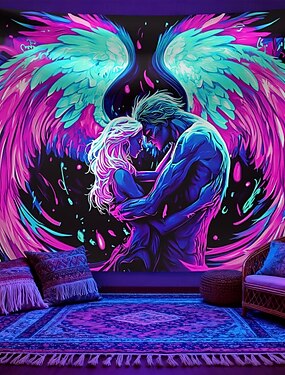 Arazzo da parete con luce nera, reattivo ai raggi UV, ali d'angelo che si illuminano al buio, arte murale con luce nera, poster per camera da letto, feste, dormitorio e decorazioni per festival
