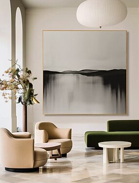 Quadro su tela dipinto a mano in bianco e nero con paesaggio lacustre, cielo nero, riflessi, decorazione murale moderna per soggiorno