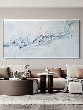 dipinto ad olio con texture, dipinto di onde marine blu, grande opera d'arte astratta da parete, grande dipinto ad olio astratto 3D blu e bianco su tela, arte moderna minimalista per l'arredamento del