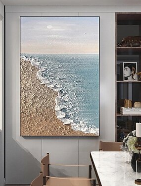 opera d'arte minimalista fatta a mano arte astratta dipinto oceano fatto a mano onda spiaggia dipinto su tela bianca blu sabbia testurizzata tela arte murale dipinto astratto originale arte murale