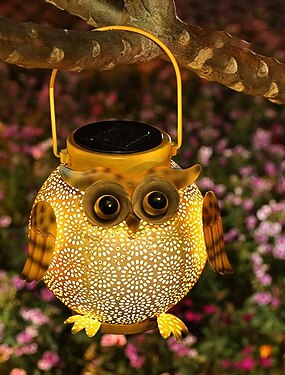 Lanterna a forma di gufo in ferro battuto a energia solare, impermeabile, per esterni, patio, prato, giardino, decorazione per animali, paesaggio, luce a LED