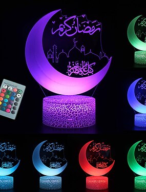 ramadan 3d moon night lights decoration mubarak 16 cambia colore telecomando islam chiesa night light decor musulmano atmosfera lampada per camera da letto soggiorno eid al-fitr party light amici