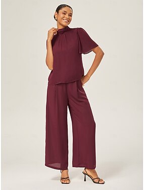Per donna Femminile Camicia casual Semplice Casuale Manica a Balze Vino Maniche Corte Elegante Vacanza Collo Alto Estate Interstagionale