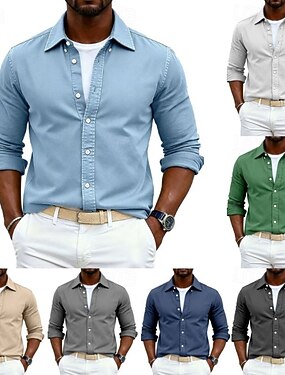 Per uomo Camicia Camicia Estiva Camicia casual Camicia da Spiaggia Camicia con Bottoni Nero Bianco Verde chiaro Beige Grigio Manica Lunga Tinta unica Bavero Vacanza Casuale Abbigliamento Moda Casual