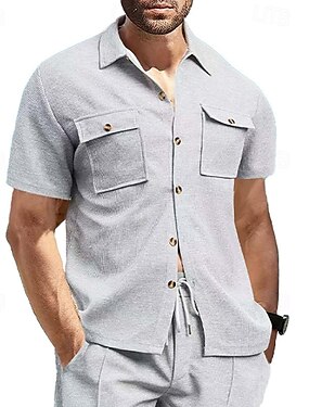 Per uomo Camicia Camicia a cialda Camicia estiva Maglietta informale Camicia con bottoni Nero Bianco Rosso Verde Beige Manica corta Liscio Colletto Da mare Giornaliero Abbigliamento Di tendenza